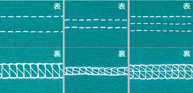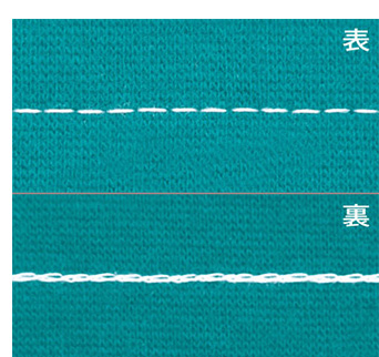主にニット系の伸縮性の高い生地の縫製に使用される縫い方で、ロックミシンやカバーステッチミシン、すくい縫いのミシンなどはこちらの縫い方になります。
